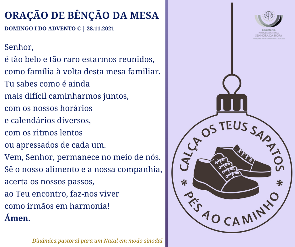 Deste modo, percorreremos o caminho para o Natal, em modo sinodal. O primeiro passo é este: Levanta-te e calça os teus sapatos. Pés ao caminho. Juntos pelo Natal.