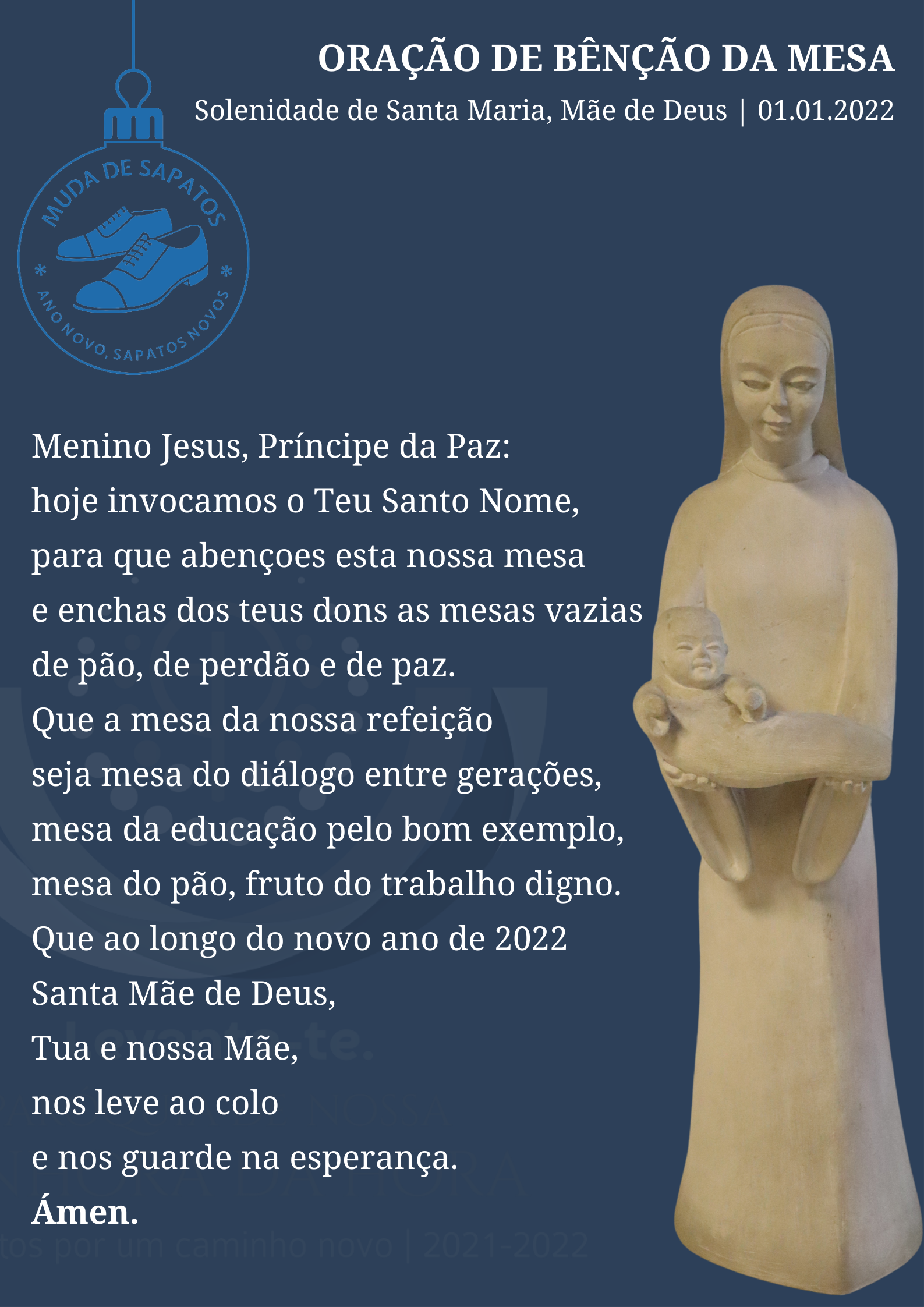 Irmão e irmã: não é o brilho dos sapatos novos que tornam belos os teus pés. “Belos são os pés do mensageiro que anuncia a paz” (Is 52,7). Belas são as tuas mãos que constroem a paz em cada dia do novo ano de 2022!