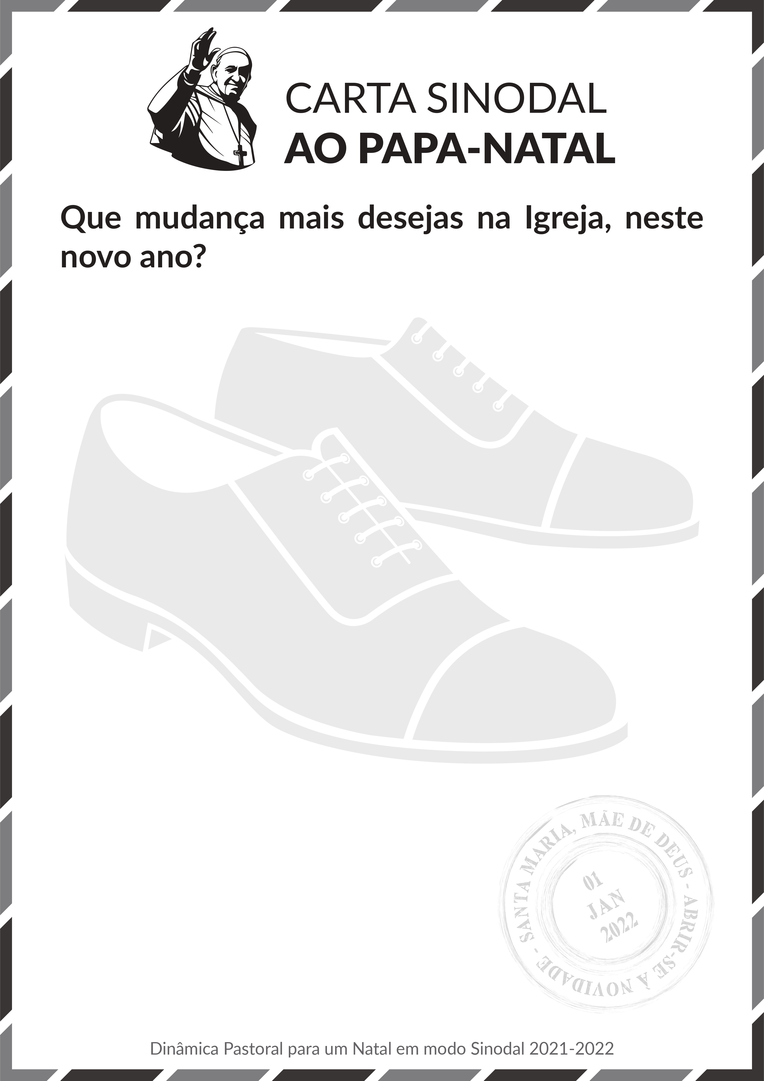 Pés ao caminho. Juntos pelo Natal.Faz-nos bem abeirarmo-nos do Presépio, que nos apresenta a Sagrada Família, os Pastores e os Magos: todos eles são pessoas a caminho. Todos eles caminham com a mesma pressa do Amor, que move o céu e as estrelas. Todos eles partem e regressam por um caminho novo. E, para que também nós prossigamos juntos por um caminho novo, sugerimos este desafio: Ano novo, sapatos novos. Como calçar estes sapatos novos, na estreia de um novo ano? Sugerimos três atitudes: maravilhar-se, mudar de vida, construir a paz.