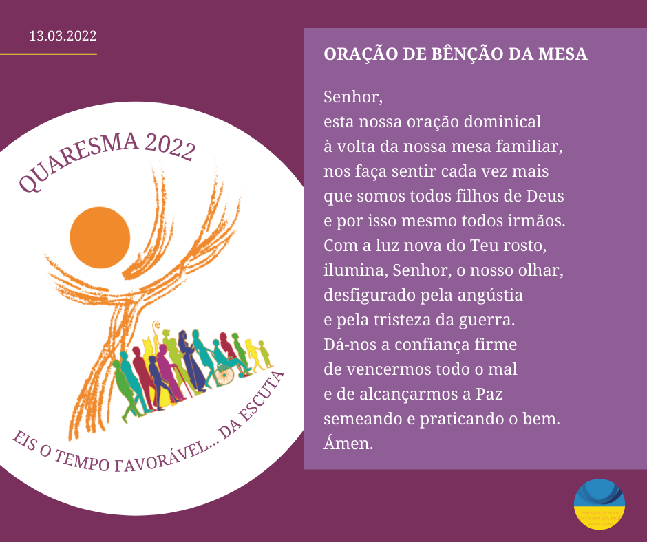 4. Irmãos e irmãs: nesta Quaresma, e em tempo de guerra, rezemos mais, rezemos sempre, sem o cessar-fogo do Espírito; usemos a arma da oração, essa tão poderosa arma que nos desarma o coração! E oremos, a partir de um belo Hino da Liturgia das Horas: