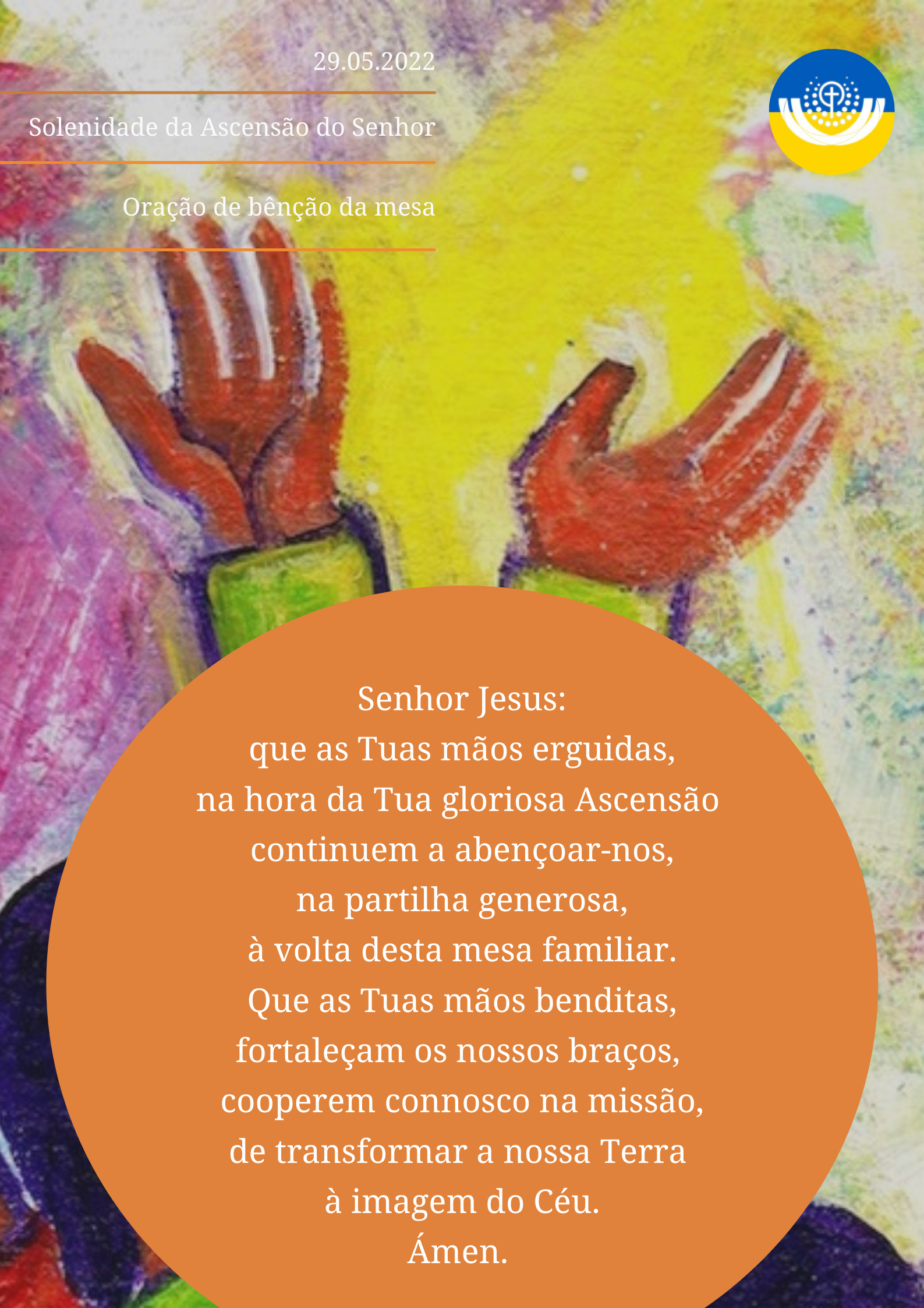De olhos fitos no céu e de pés assentes no chão, perguntemo-nos, hoje, quais são os grandes desafios, para os discípulos de Jesus, a partir da Ascensão? Gostaria de partilhar e refletir convosco apenas dois: mudar o próprio olhar para ver com os olhos de Jesus e crescer na fé para amadurecer e frutificar na missão.