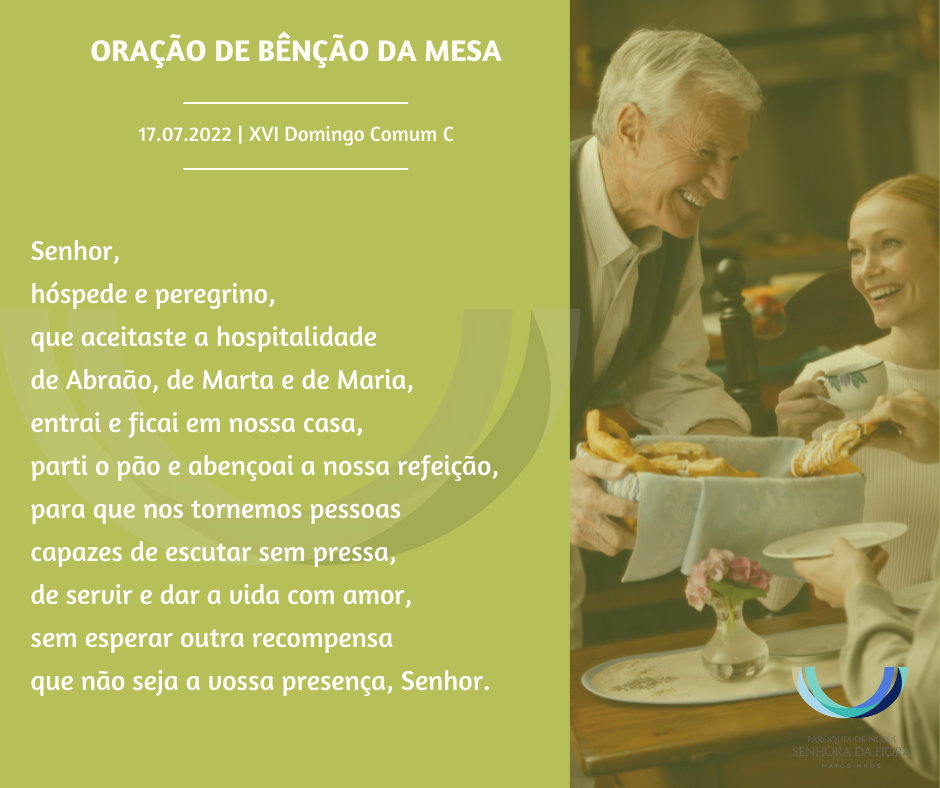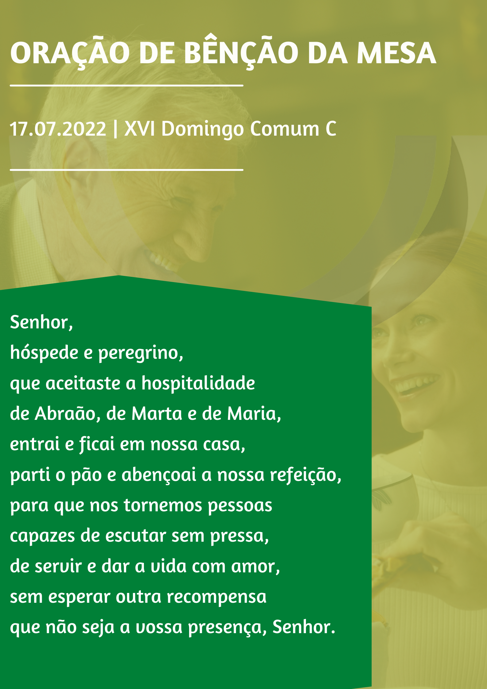 1. Abraça o presente. Juntos por um caminho novo!É o lema do novo ano pastoral 2022-2023. Partindo da imagem bíblica do abraço de saudação entre Maria e Isabel, a nossa Diocese do Porto, que se prepara para receber milhares de jovens por ocasião da próxima Jornada Mundial da Juventude, quer aproveitar esta oportunidade excecional para valorizar e melhorar a formação e a prática do acolhimento pastoral e da hospitalidade, como marca distintiva de uma Igreja, Mãe de coração aberto. E a Liturgia deste Domingo, oferece-nos duas belas imagens da hospitalidade: a de Abraão e de Marta e Maria, que recebem Jesus em sua casa.