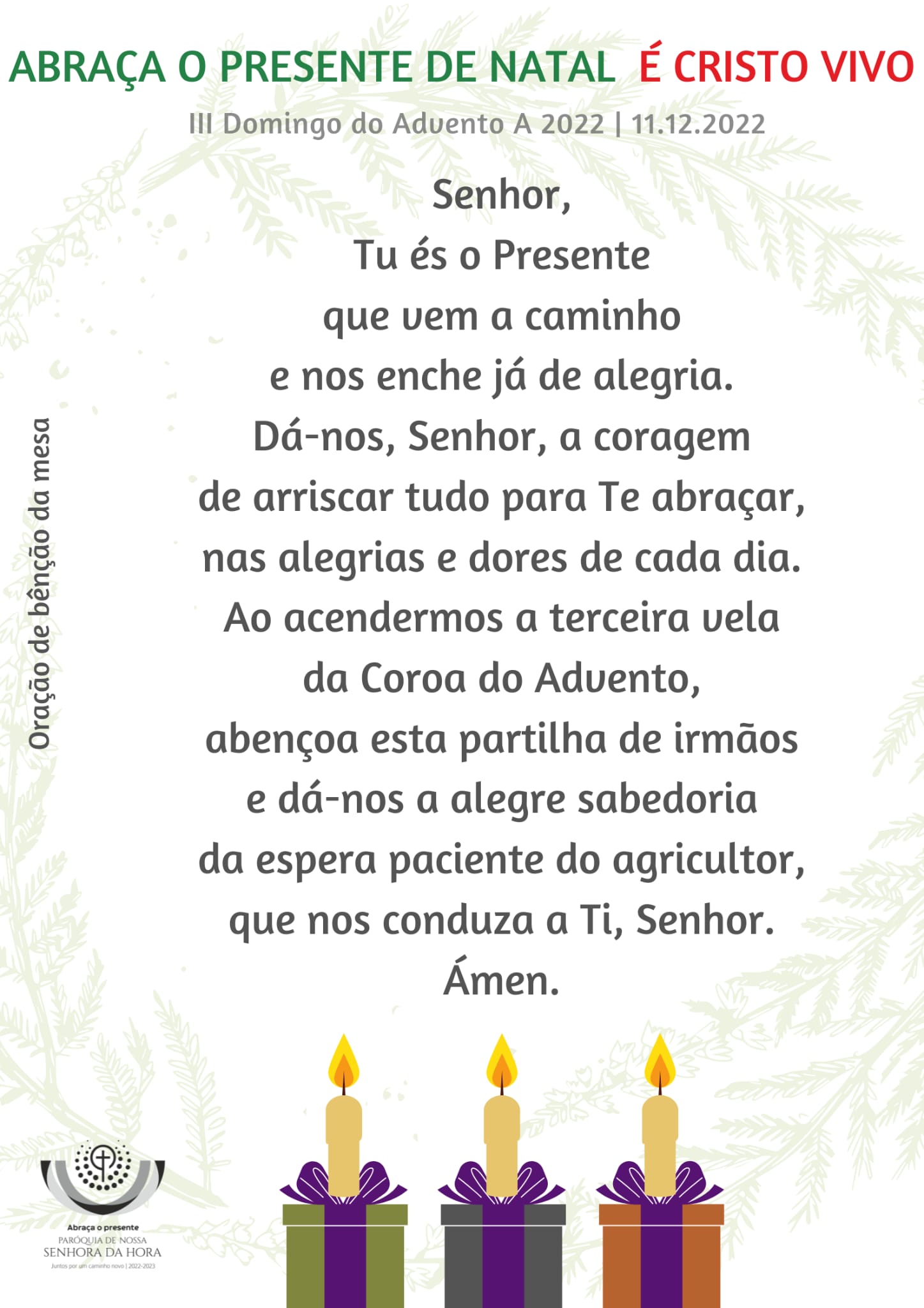 Irmão, irmã: o Senhor está próximo! Abraça o presente deste Natal que é Cristo vivo! O Presente vem já a caminho! Vale a pena arriscares, para O receberes neste Natal, com renovada alegria!