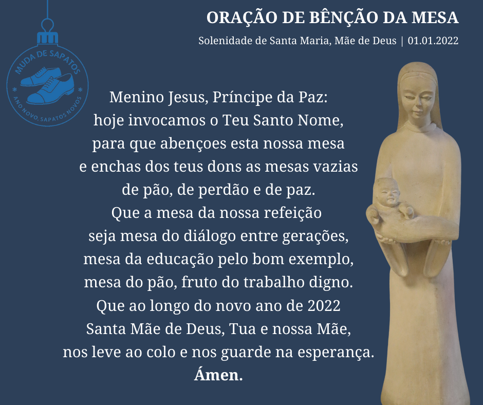 Irmão e irmã: não é o brilho dos sapatos novos que tornam belos os teus pés. “Belos são os pés do mensageiro que anuncia a paz” (Is 52,7). Belas são as tuas mãos que constroem a paz em cada dia do novo ano de 2022!