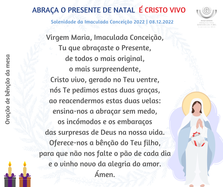 3. Agora, só é preciso que Maria responda e corresponda, acolha e receba de mão beijada a prenda, o Presente, a graça de Deus em carne viva. E Maria diz Sim. Com a força do seu Sim, Maria abraça o presente, sem rodeios, sem reservas, sem condições, sem esperar para ver que acontece. Apesar do embaraço daquele abraço, Maria – literalmente embarazada, como se diz na língua espanhola para falar de uma mulher grávida – arriscou tudo. Maria teria, sem dúvida, uma missão difícil pela frente, mas as dificuldades não foram razão para Ela dizer não. Certamente tinha complicações, mas não aquelas que resultam da cobardia que nos paralisa por não ver tudo claramente ou por não ter tudo assegurado de antemão. Maria abraçou o presente; não comprou um seguro de vida. O sim e a vontade de servir foram mais fortes do que as dúvidas e dificuldades (cf. Ch.viit, n.º 44). E graças àquele Sim, Maria abraçou o mais original presente de Natal.