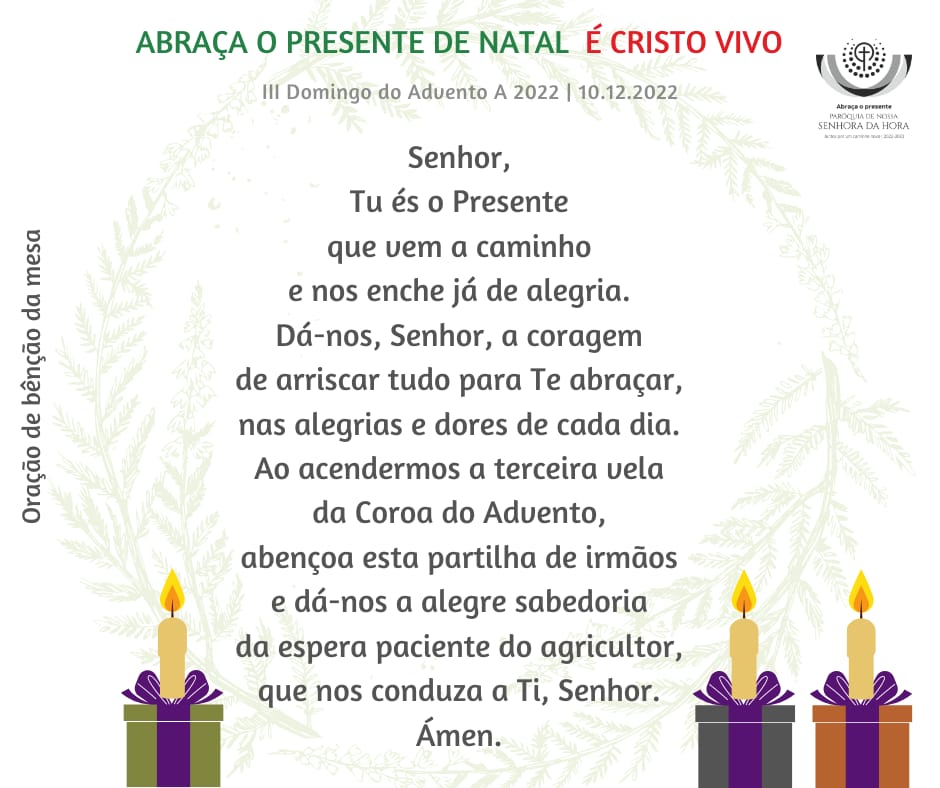 Irmão, irmã: o Senhor está próximo! Abraça o presente deste Natal que é Cristo vivo! O Presente vem já a caminho! Vale a pena arriscares, para O receberes neste Natal, com renovada alegria!