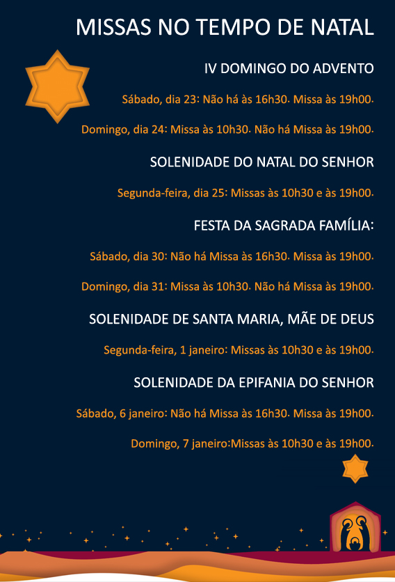 5. Irmãos e irmãs: “Movidos pela Estrela que brilha no amor, / encontramos Maria, José e o Menino, / nosso único salvador! /// Pobre de meios, como uma tenda, / é neste Presépio que nasce a Luz. / E o nosso tesouro escondido é Jesus. /// Vinde, Senhor, e enriquecei-nos, / com os pobres pela casa adentro. // E brilharemos como Estrelas no firmamento”!
