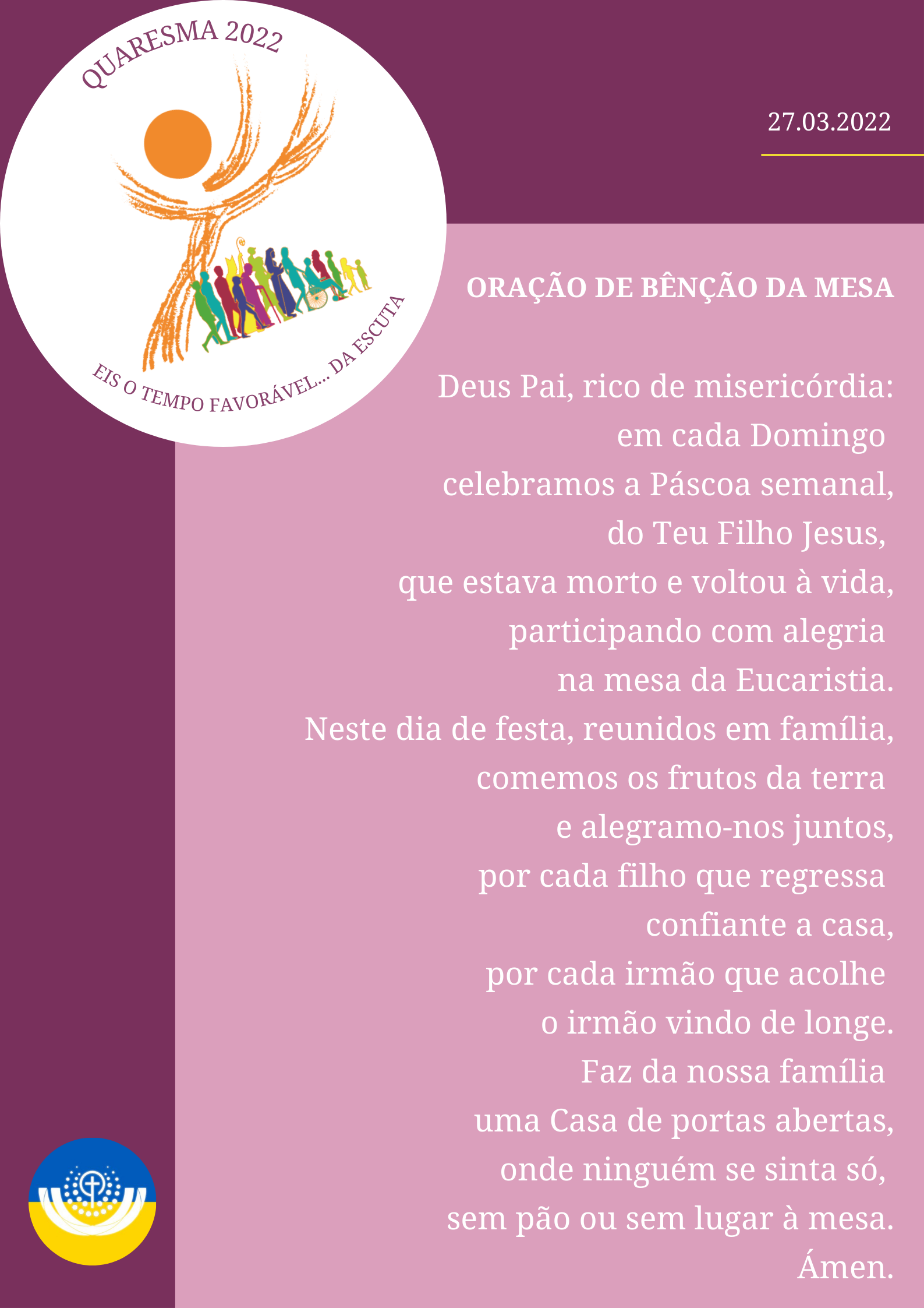5. Irmãos e irmãs: Terá o filho mais velho entrado e participado na festa? Não o sabemos. Este final «em aberto» sirva para comunidade, cada família, cada um de nós… o escrever com a sua vida, o seu olhar e a sua atitude. O cristão sabe que, na casa do Pai, há muitas moradas; de fora, ficam apenas aqueles que não querem tomar parte na Sua alegria. Cabe-te a ti acolheres o convite a entrares e a deixares entrar. Na certeza, porém, de que não há festa em casa do Pai, que não seja também uma festa de irmãos. Olha que, na casa do Pai, a distância dos filhos e a distância entre irmãos, não se mede aos palmos nem a metro, mas mede-se pelos braços, mede-se pelos abraços! Deixemo-nos abraçar por amor de Deus Pai.