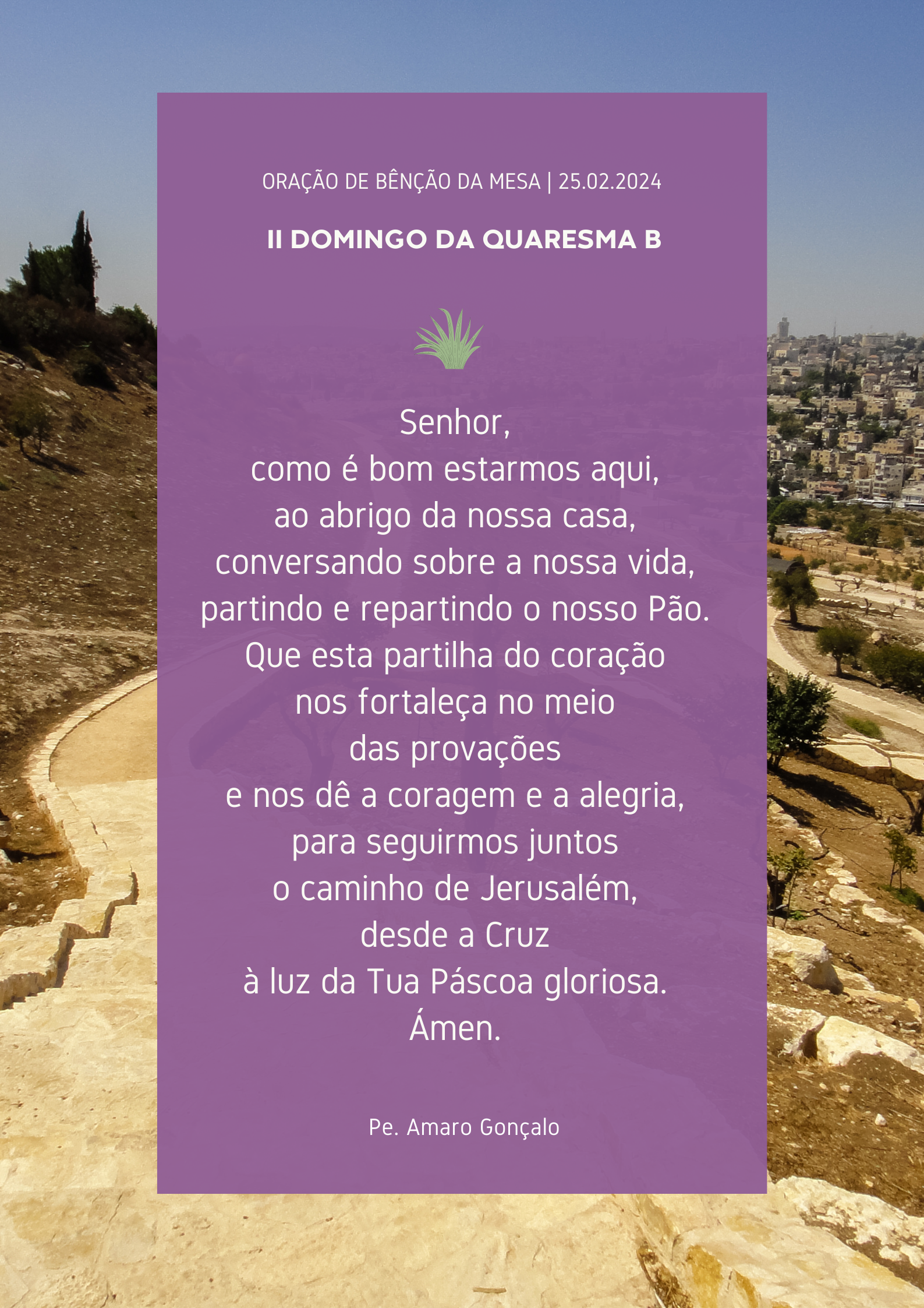 Recordemos o lema da nossa caminhada da Quaresma à Páscoa: “Vamos com alegria, subamos juntos a Jerusalém”.