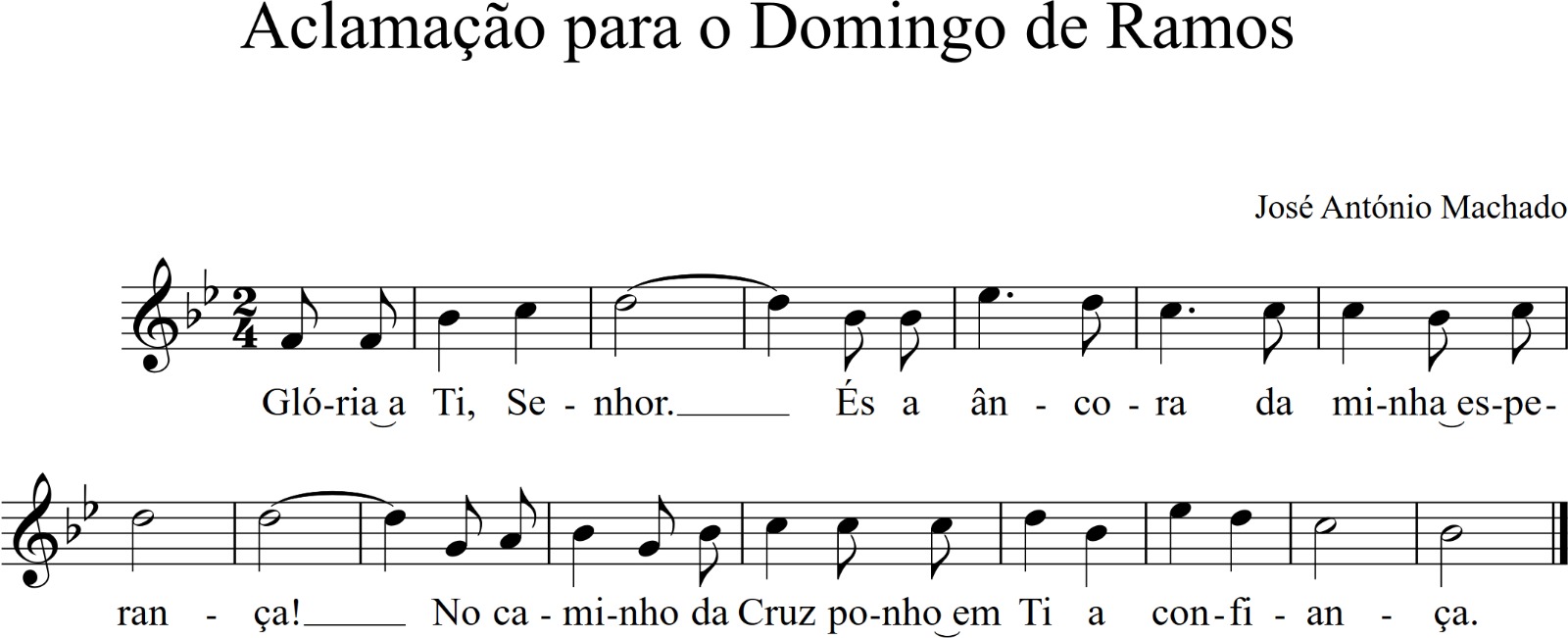 Irmãos e irmãs: A primeira parte da nossa celebração comemora a entrada do Senhor em Jerusalém, Cidade da Esperança. Não é a entrada triunfal de um rei poderoso, montado em cavalos de guerra. É a entrada do Messias, nosso Rei, pobre, manso e humilde de coração, que vem tomar posse da Sua Cidade, da Cidade do grande Rei (Sl 45,5; 47,2-3). Para tal, Jesus quis precisar apenas de um jumentinho, animal de carga, humilde e servidor (cf. Zc 9,9). A multidão saúda-o com o título divino, do «Rei que vem»: «Bendito o que vem como Rei em nome do Senhor». Jesus não vem para iludir de falsas esperanças o Seu povo. Não vem para impor uma ordem nova, pela força das armas. Vem para amar e desposar a Cidade Santa, a filha de Sião. Vem para Se entregar por todos nós. Por isso, a multidão dos discípulos aclama: “Paz no Céu e glória nas alturas”. Todas as grandes esperanças se condensam nesta Paz, que vem do alto, nesta glória de Deus, que nos faz homens vivos. Com os olhos postos em Cristo, nossa única esperança, aclamemos o Senhor e demos-Lhe glória, cantando: R.Glória a Ti, Senhor. És a âncora da minha esperança. No caminho da Cruz ponho em Ti a confiança.